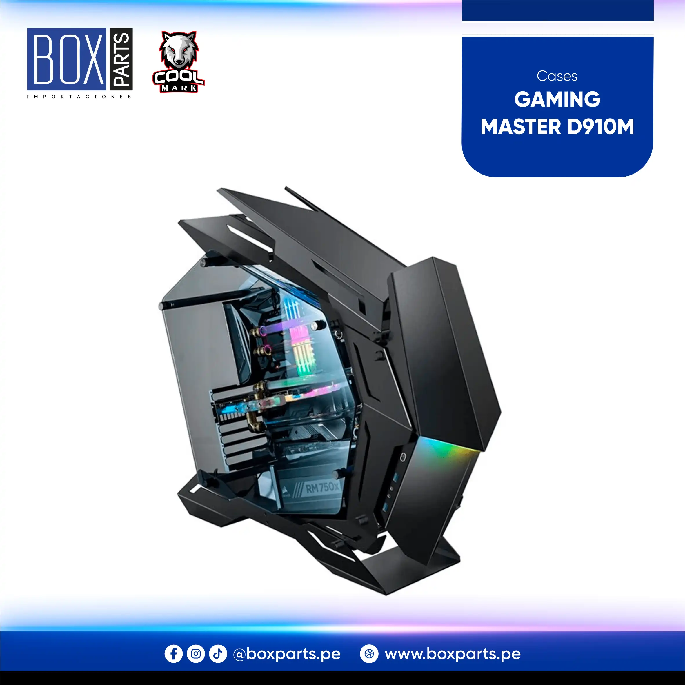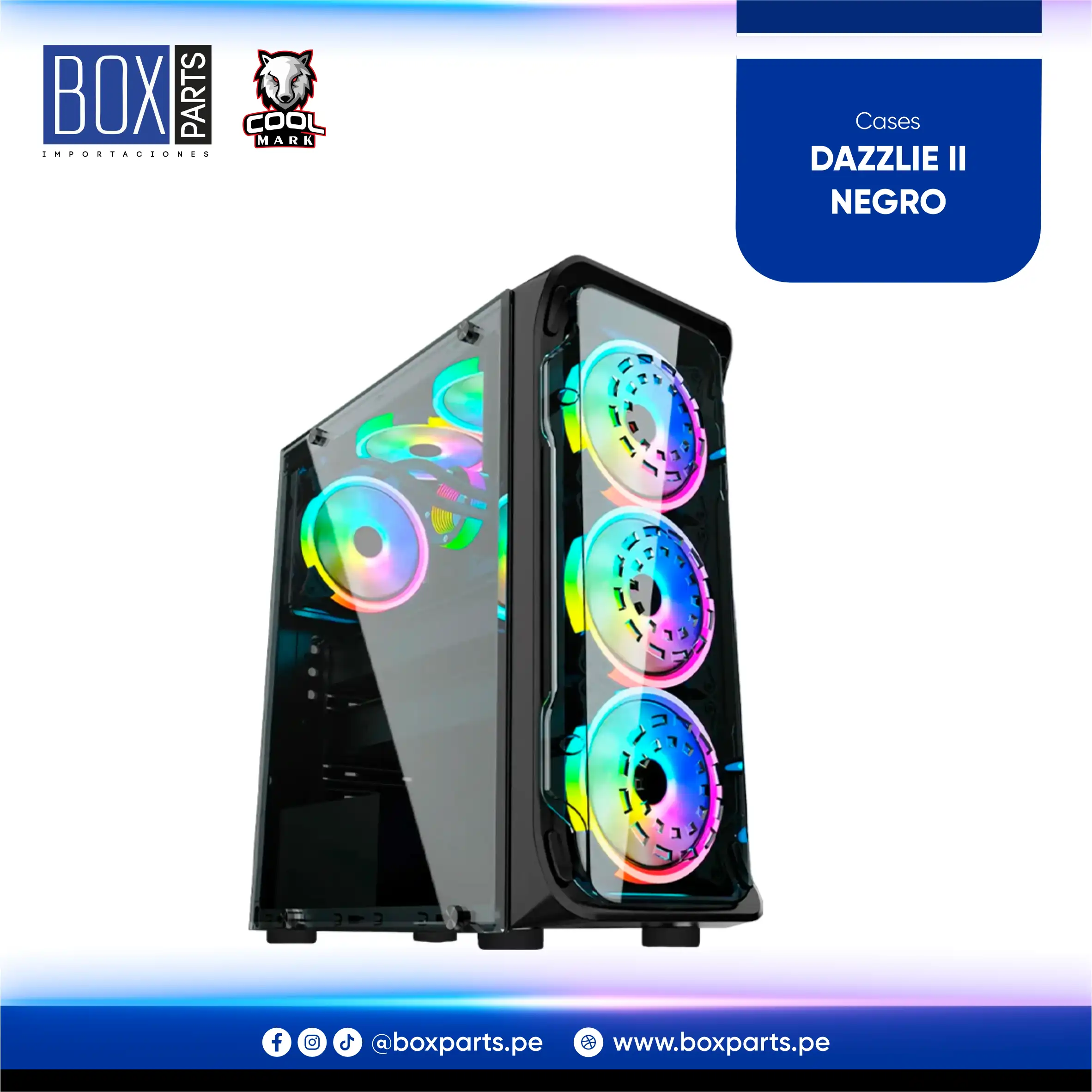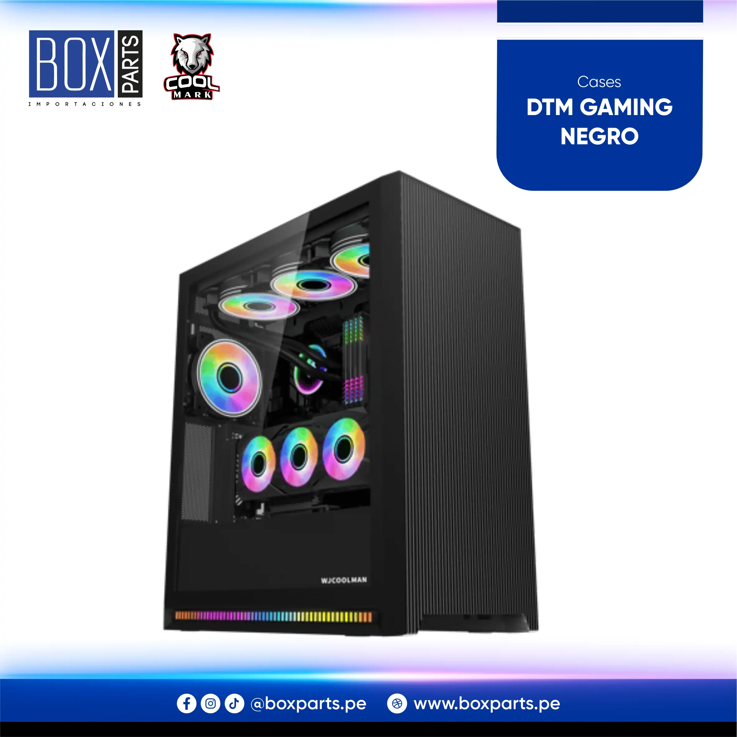 Case gamer con panel lateral de vidrio templado, soporte para placas ATX/Micro-ATX/mini-ITX y múltiples ventiladores para una óptima refrigeración.